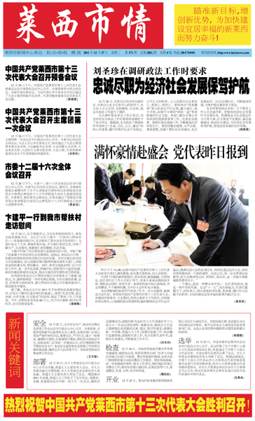 12月26日下午,中国共产党莱西市第十三次代表大会主席团第一次...