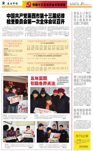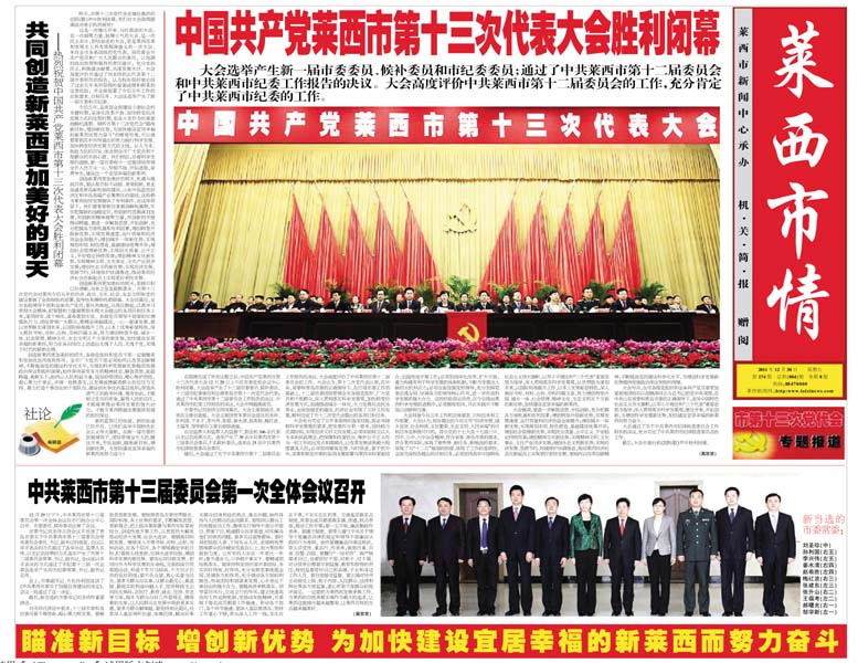 热烈祝贺中国共产党莱西市第十三次代表大会胜利闭幕 昨天,市第十三次党代会在雄壮激昂的《国际歌》...