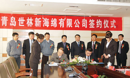 1月10日,青岛世林新海绵有限公司签约仪式在市行政办公中心举行。市委副书记、市长孙利国,市委常委、政法委书记王福考,市政府党组成员黄迪勇出席签约。
