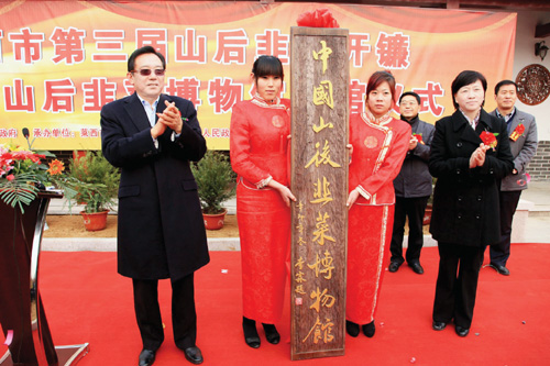 1月10日上午,孙受镇董家山后韭菜基地举行第三届山后韭菜开镰暨中国山后韭菜博物馆开馆仪式,5000亩有机韭菜正式收割。青岛市副市长张元福,我市市委书记刘圣珍,市委常委、副市长张建东,市委常委、市委办公室主任、市政府副市长张升山出席仪式。张元福与刘圣珍共同为中国山后韭菜博物馆揭牌。