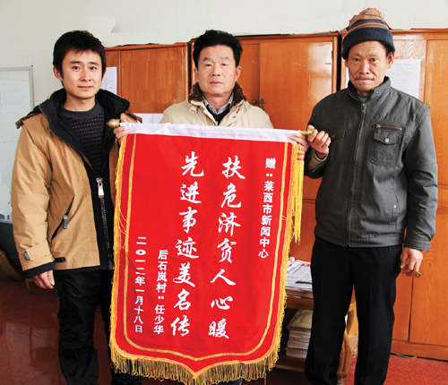 1月18日下午,院上镇后石岚村任广和的弟弟任广山和侄子任希洲,将一面写有“扶危济贫人心暖,先进事迹美名传”的锦旗送到新闻中心。“感谢你们对我哥哥和我侄女的帮助!”一进门,任广山便拉住工作人员的手感激地说道。自本报于1月4日刊发了院上镇后石岚村少女任少华因父亲尿毒症晚期导致家庭陷入困境的报道以来,不断有好心人将爱心款送到任广和父女手中,让这个贫困的家庭看到了生活的希望,感受到了社会的温暖。