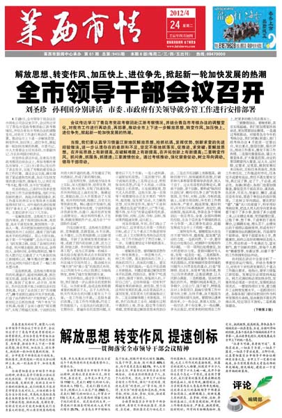 解放思想转变作风提速创标———贯彻落实全市领导干部会议精神