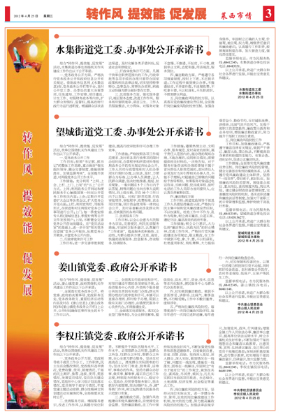 结合“转作风、提效能、促发展”活动,姜山镇党委、政府围绕机关作风建设工作作出以下公开承诺:
