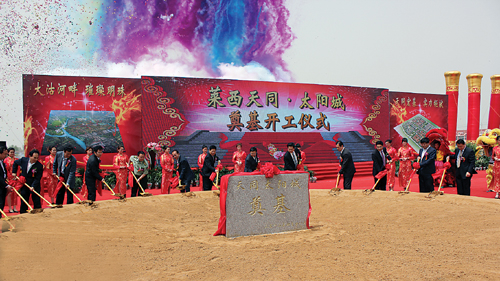 4月28日,总投资60亿元的“天同·太阳城”新型农村社区项目奠基暨紫荆园一期开工仪式在店埠镇隆重举行。市领导孙利国、李兴伟、于永才、张锐、张建东、曹杰军出席奠基仪式。中共中央政策研究室原秘书长纪玉祥,国家旅游局综合司司长张坚钟,国家战略研究院副院长何佳龙,中国房地产协会副秘书长王平,山东省房地产协会副会长金正军等嘉宾应邀参加仪式。
