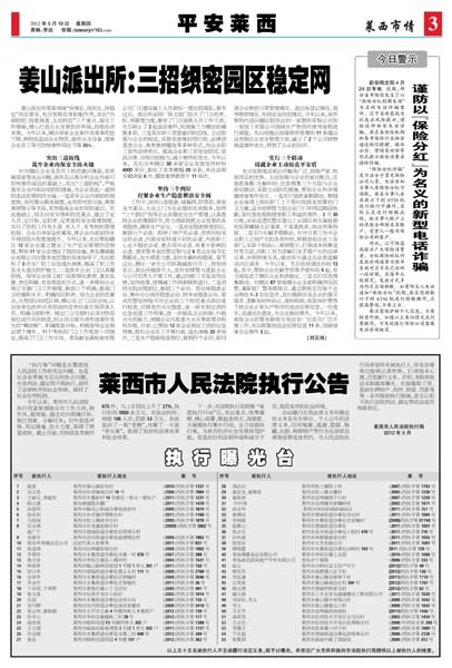 今年以来,莱西市人民法院执行局紧紧围绕全市工作大局,转作风,提效能,通过对内明确目标、制订预案、分解任务;对外营造声势、用足措施、加大力度,取得了明显成效。截止目前,共执结各类案件675件,与上年同比上升了27%,执行标的3900余万元。共依法拘传、拘留106人次,罚款53万元。依法惩治了一批“老赖”,化解了一大批“骨头案”,收到了良好的法律效果和社会效果。
