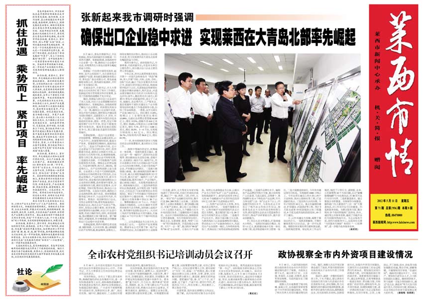 青岛市委副书记、市长张新起在我市调研时明确要求我市抓住青龙高速、城际铁路、大沽河治理、姜山新城园...