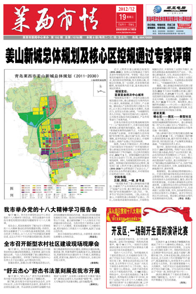 近日,《莱西市姜山新城总体规划(2010-2030)》及核心区控规通过了国内及省市专家组的评审。...