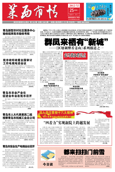 12月21日,青岛市农委副主任、农工办专职副主任窦宗君带领青岛新型农村社区服务中心验收组来我市,...