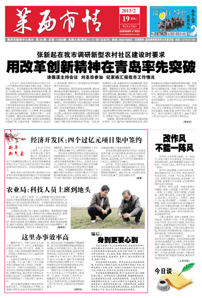 2月17日,青岛市政府在我市行政办公中心召开新型农村社区建设方案汇报会。青岛市委副书记、市长张新...