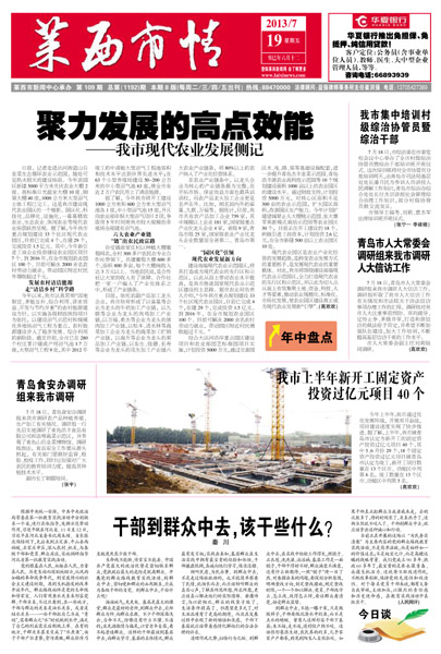 7月18日,青岛食安办调研组来我市调研农产品种植养殖、生产加工有关情况。调研组一行先后实地调研了...
