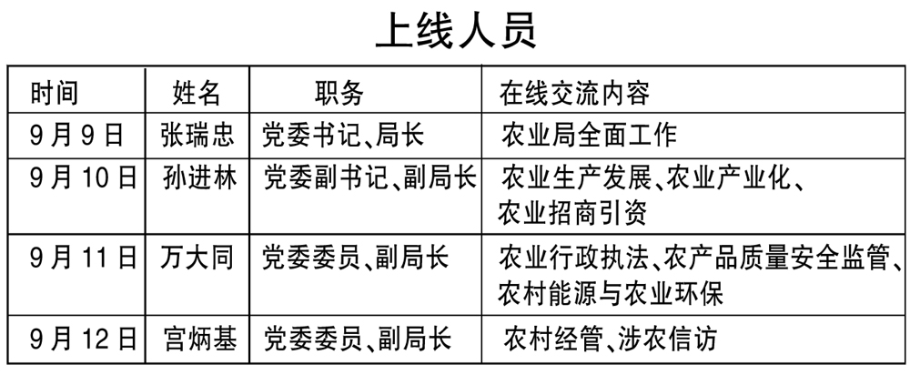 2013年9月9日—9月12日每天上午7:50—8:30,市农业局的领导做客莱西人民广播电台“政风行风在线”栏目,将围绕全市农业生产、农业产业化等问题与听众进行在线交流,受理、答复群众投诉。