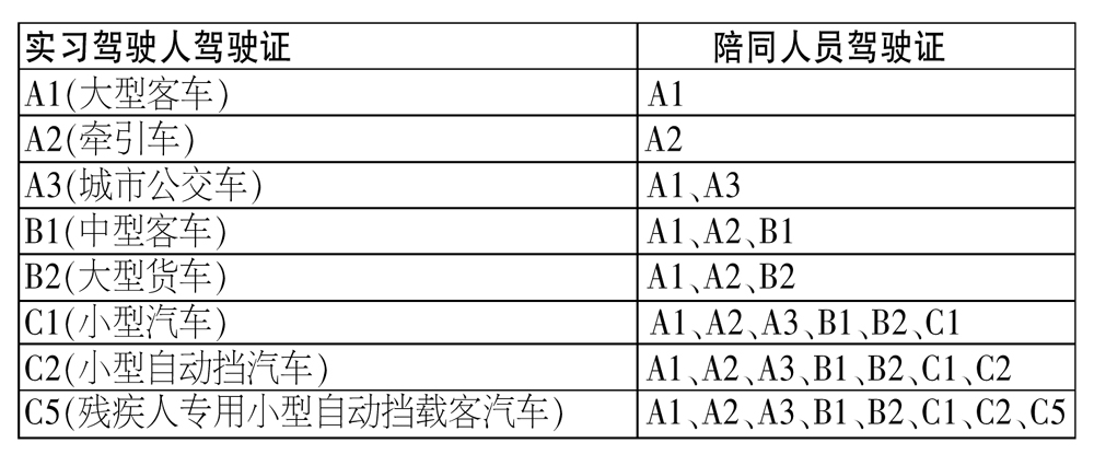 答:实习期驾驶人驾驶机动车上高速公路行驶,应当由持相应或者更高准驾车型驾驶证三年以上的驾驶人陪同。驾驶残疾人专用小型自动挡载客汽车的,由持有小型自动挡载客汽车以上准驾车型驾驶证的驾驶人陪同。可以按照下表确定陪同人员的驾驶证类型: