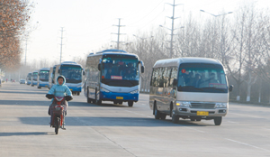 政协委员到会场统一乘车,没有警车开道,不封路。 (徐亚晓)