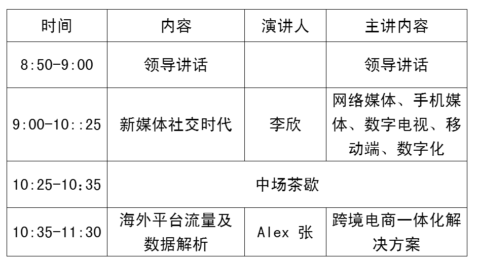 5月6日,我市跨境电商园举办“传统企业+互联网转型之战”·莱西会场系列活动——“新媒体社交时代”+“海外平台流量及数据解析”方案如下: