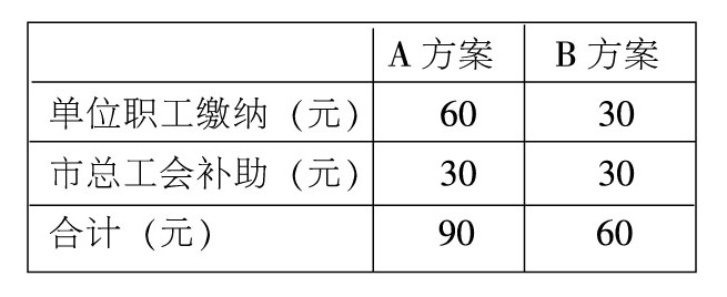 B方案60元,其中参加单位、职工缴纳30元,青岛市总工会给予补助30元