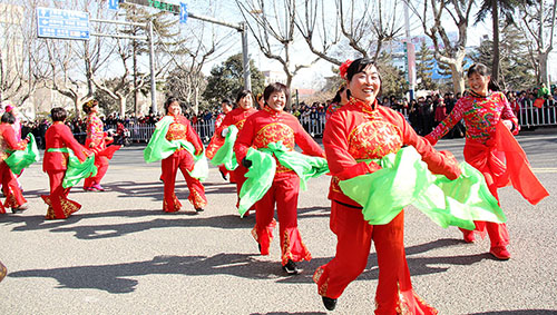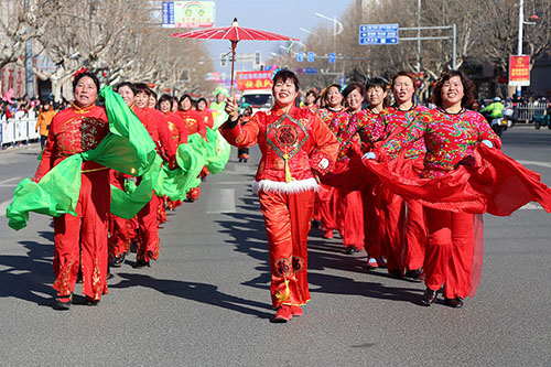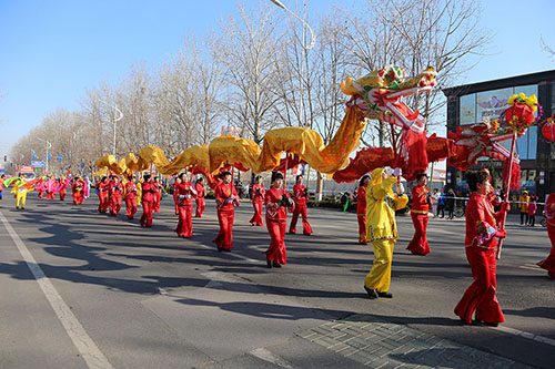 辞旧鞭炮催春潮,迎新锣鼓闹元宵。农历正月十五上午,我市隆重举行第十五届月湖文化艺术节开幕式暨元宵节秧歌巡游活动。在市区及各镇街活动现场,震天的锣鼓、欢快的舞蹈、挥舞的彩绸、翻飞的金龙,为沉浸在节日气氛中的市民奉上了一道精彩纷呈的文化大餐。