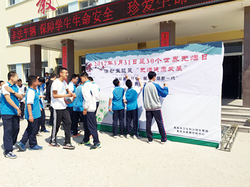 今年5月31日,是世界卫生组织发起的第30个“世界无烟日”。主题是“烟草——对发展的威胁”,我国的活动主题是“无烟·健康·发展”。市卫计局、疾控中心高度重视、精心组织,本着教育为先、普及为重、多方协作、节俭为基、效果增优的目的,在5月31日活动的基础上,结合了学校结核病防制、健康膳食、营养调控等宣传内容,重点加强对中学生吸烟问题的科学督导。