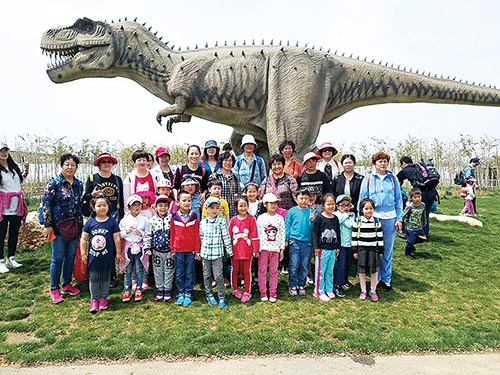 2、参观恐龙乐园、浮桥比赛。