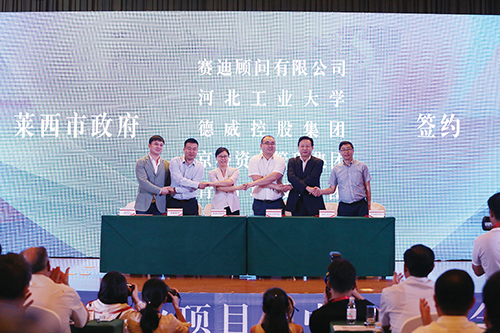 市政府与赛迪顾问公司、河北工业大学、德威集团、京桥资本管理集团、青岛城投集团签约。