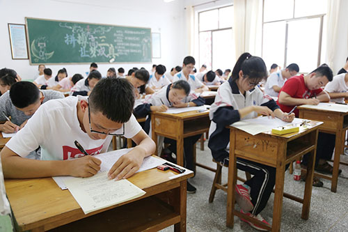 明年高考将启用全国卷,为了摸清学生对题型的适应状态,实验学校的高三学生们在考试中度过了开学第一天。