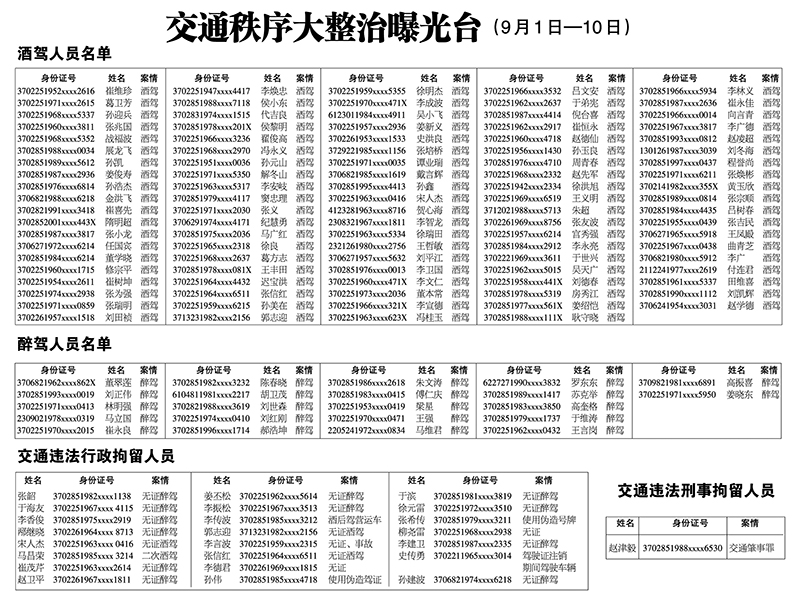 交通秩序大整治曝光台(9月1日—10日)