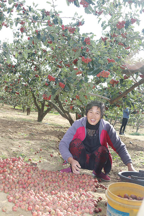 眼下,山楂正值丰收。在沽河街道西张家寨子村,果农张淑玉正忙着分拣山楂。仅果园一项,张淑玉每年纯收入近2万元。她笑着说:“多亏了共产党,俺们农民过上了和城里人一样的生活,今后的日子也会像满园的山楂一样,红红火火。” (徐亚晓)