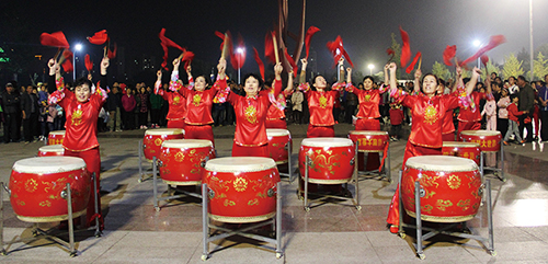 为欢庆十九大,10月22日晚,近百名市民在月湖广场开展了义务展演活动,活动现场锣鼓、秧歌、舞龙精彩上演。莱西秧歌传承人孙中祥表示,感谢党和政府的好政策让老百姓的生活越来越好! (葛虹虹 唐宝静)