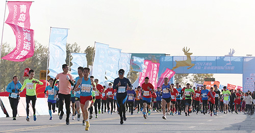 10月29日,由青岛市体育局、青岛市体育总会、莱西市人民政府主办的2017青岛姜山湿地国际马拉松在姜山湿地开跑,此次比赛分为全程马拉松(42.195公里)、半程马拉松(21.0975公里)、迷你马拉松(6公里)三个比赛项目,吸引近5000名选手参赛。市领导姜水清、张显杰、丁朝霞出席开幕式,并为选手鸣枪开跑。