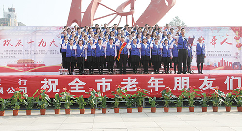 表彰大会后,庆祝老年节文艺演出拉开序幕,《共圆中国梦》、《儿行千里》、《快乐的布谷鸟》等节目纷纷上演。 葛虹虹 刘显金 王艳芝 摄
