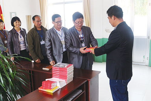 11月7日,市新华书店将十九大报告辅导读本等内容书籍,送到了望城街道兴华学校的教职员工手中。市新华书店相关负责人告诉记者:“十九大精神要进农村、进企业、进机关、进校园、进社区,就需要有相应的读本进行学习,我们开展了‘十九大读本进基层’活动,积极联系各学校、企事业单位等,争取早日把十九大读本送到全市党员干部手中。”