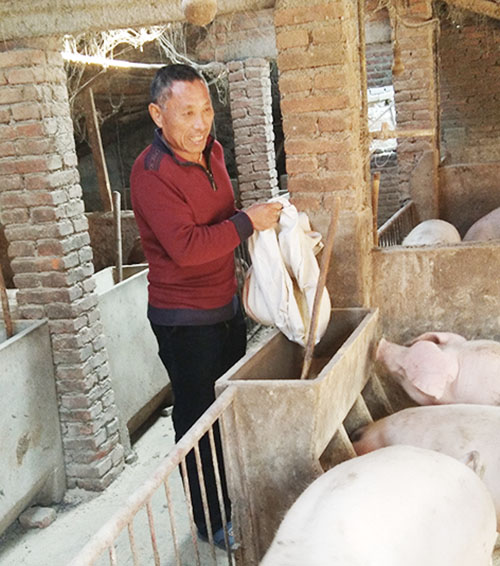 代刚今年50岁,与妻子养猪多年,他说,养猪户最担心的除了猪的健康,就是猪粪的污染。为了实行生态养殖,这一阶段他出去学习了“发酵床”技术,这种技术是依据微生物学和生态学原理,利用特有活性的复合微生物群持续稳定地将猪的粪尿废弃物转化为气体、有用物质与能量,实现粪尿完全降解的无污染、零排放目标的一种新环保型养殖模式。“这样就可以养猪致富和推进绿色发展两不误了。”代刚说。