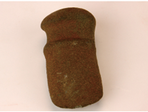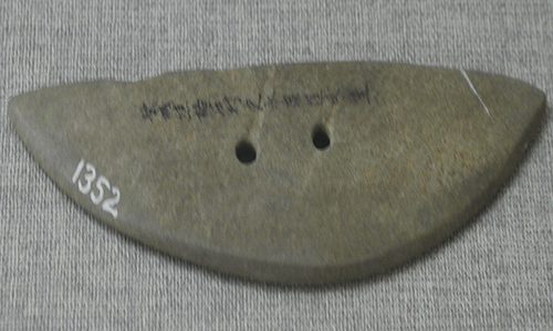 院上镇七岌村出土的亚腰石斧由岩石制成,质地细腻坚硬,亚腰部分可以安装木柄并以绳系紧,用于挖窝下种或收割庄稼。产芝遗址出土两件半月形石刀,青灰岩质,通体磨光,造型精美,弧背直刃,正面微鼓,背面内凹,双孔用于系绳,劳动时放于中指上,类似镰刀。这些制作精致的石器,反映了岳石文化时期先民的加工技术和较高的审美品位。