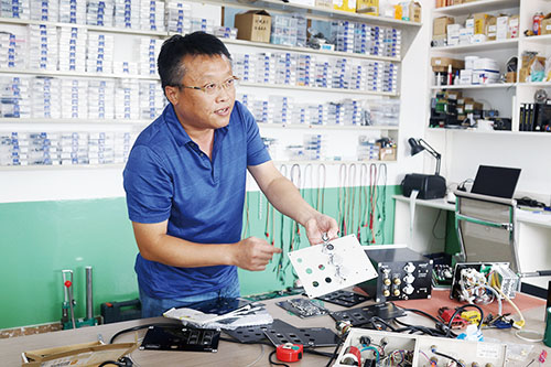 在中邦实验室,大大小小的零部件与电子仪器摆满实验台,经过潘鹏飞几个月时间的精雕细琢,体积小巧带触摸屏的第六代搪瓷喷涂设备已研制成型。整个设备研发过程中集中运用了嵌入式单片机系统、电路设计、机械美学等知识, 500多个部件的任何一个微小细节都做到精益求精。“比如机器的后盖板,为了把它做得更贴近用户实际,我们前前后后做了十几款样板,改了十多次设计,最后才定型出了这一款。再比如用电安全性方面,我们精确考虑了每一个机箱螺丝的紧固与导电连接,增强电磁屏蔽作用,防止静电积累,保障了机器在强电磁干扰的工业环境下可长期持续稳定运行。就连机器的电源插头,也一波三折,用心斟酌,最初选择的常规三芯电源接插件,电源线插入机器的一端,是3条镀金的插针,如果用户电源线的另一端连接电源,航空插头这一端从机器上拔下的话,用手摸到插针就会被电到,所以我们就联系插座厂家,专门定制了反装接插件,将插针移到机器上,而线上插头则是3个凹进去的插孔,即便线拔下来人不小心摸到也不会有触电的危险。”潘鹏飞介绍道。