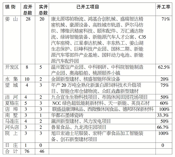 截至9 月底,全市应开工项目76 个,实际开工项目46 个;全市累计开工面积102.26 万平方米,累计完成投资16.6 亿元,其中,工业项目60 个,累计开工面积98.38 万平方米,累计完成投资15.56 亿元;非工业项目16 个,累计开工面积3.88 万平方米,累计完成投资1.04 亿元。