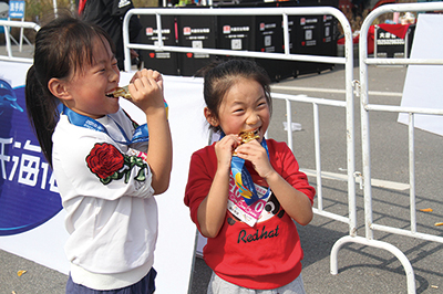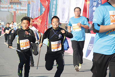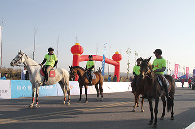 记者在现场看到,本届马拉松比赛特色满满,其中一大亮点就是队伍起跑时有骏马为比赛开道领跑,让运动员们体验与骏马追逐的快乐。迷你跑沿途还设置了动物区,有羊驼、骆驼、鸵鸟等小动物与运动员近距离接触。