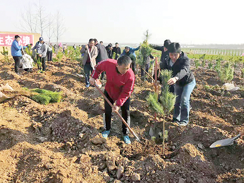 春光融融暖万物、植树添绿正当时。日前,水集街道组织机关干部和村庄党员群众100余人在凤台埠村北开展2019年春季义务植树活动。大家一起挥锨挖土,回填入坑,培实新土,浇水灌溉,一棵棵新苗稳稳地在土里扎下了根。 (郭寿明)
