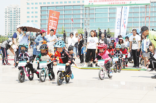 自行车选手们出发后,儿童平衡车公开赛在市人民广场开赛。小选手们你追我赶、互不相让,充分展示出小运动员勇敢向上的心理素质和良好的身体协调性、柔韧性及平衡力。