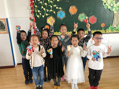 幼儿园的小朋友们用亲手制作的花束、自己绘画的风筝向母亲传达节日祝福。