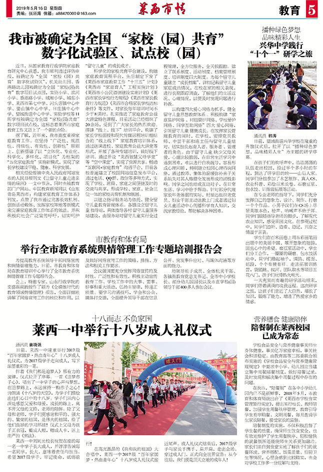 记者 葛虹虹 通讯员 张峰林 日前,记者从市教育和体育局获悉,《莱西市2019年幼儿园招生...