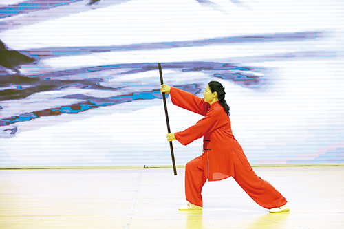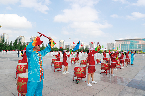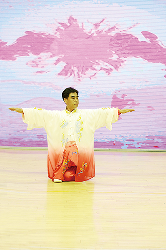 现场,青岛各市区代表队表演了健身气功马王堆引导术;一千名太极拳爱好者进行了24式太极拳、八段锦、穴位健身操和太极功夫扇展示。他们身着古朴服装,在柔和的背景音乐中舒缓起手,舒展身体,于动静之中诠释太极魅力,宏大的规模和行云流水般的表演令人赞叹,吸引了不少市民前来观看。