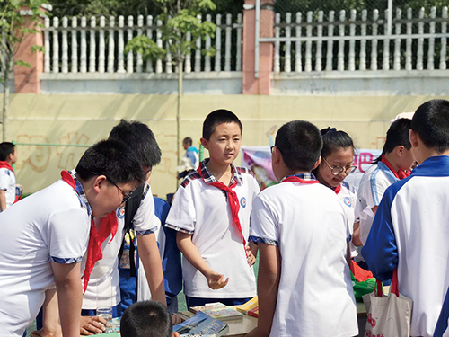 节日期间,香港路小学举办第五届图书节活动,组织学生开展图书义卖。