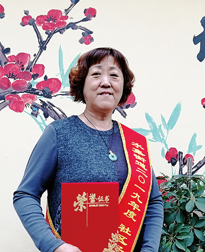 迟万玲,性格开朗,办事稳重,善于思考,自学能力强,积极参加社区的公益和各种文艺活动。喜欢唱歌、跳广场舞、扭秧歌,并且获得了各类奖项。带动身边的老年人形成了一种老有所养、老有所乐的生活氛围。