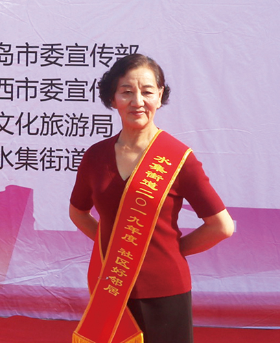 栾风湘,水集街道重庆路社区居民,擅长唱歌、跳舞。退休以后积极投身社区志愿活动,多次获得社区“优秀志愿者”“优秀母亲”等称号,2018年成为重庆路社区一名曲艺类宣讲员,荣获2018年“启航新时代、共筑中国梦”百姓宣讲大赛曲艺类青岛市三等奖,莱西市一等奖。