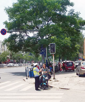 日前,在青岛路与威海路交叉口,市民仍有不按交通规范逆行的行为。