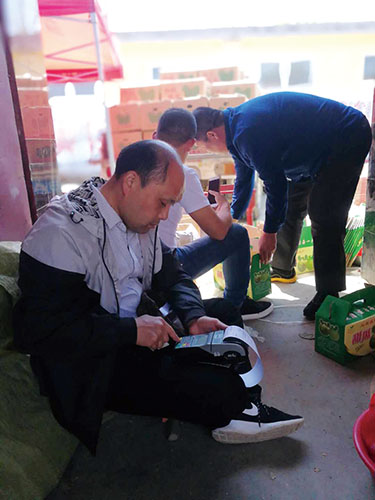 上门为甜瓜收购户办理结算服务。