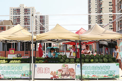 梅山路市场概况:梅山路市场是政府基础设施重点工程,位于翡翠城小区东侧,梅山路以南,占地面积30多亩,总投资1000余万元,建有90多间网点房,设400多节柜台,划分干鲜果、蔬菜、粮油副食品、水产、肉类等经营区。另外,市场内还配套保洁、保安力量,并安装30多个监控摄像头,按时开市、闭市,夜间实行封闭式管理。