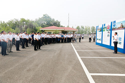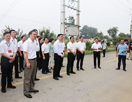 在日庄镇沟东村,与会人员听取相关部门负责人介绍村庄发展情况。