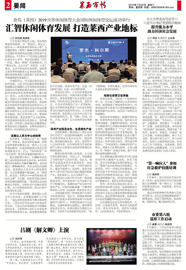 记者 高欢欢 刘亚男 七月流金,热情似火。7月27日上午,青岛(莱西)2019世界休闲体育...