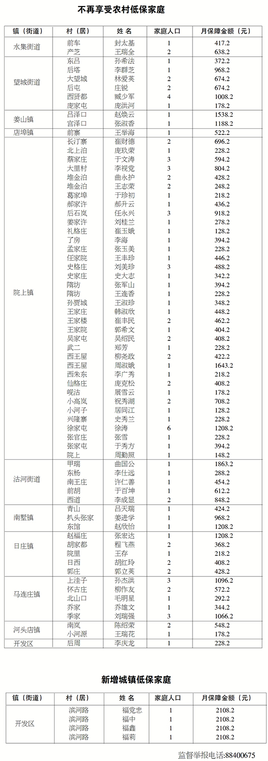 二0一九年八月份城乡低保对象调整情况公示
