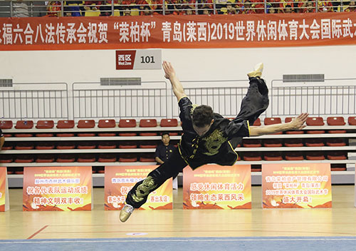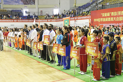 8月30日—31日,青岛(莱西)2019世界休闲体育大会国际武术节在市体育中心举行。来自36国的94支代表队经过激烈角逐,河南民喜代表队获得集体器械项目冠军,青岛陈氏太极拳国际培训基地夺得集体拳术冠军,喀麦隆、老挝联合队获得集体拳术国际组冠军。